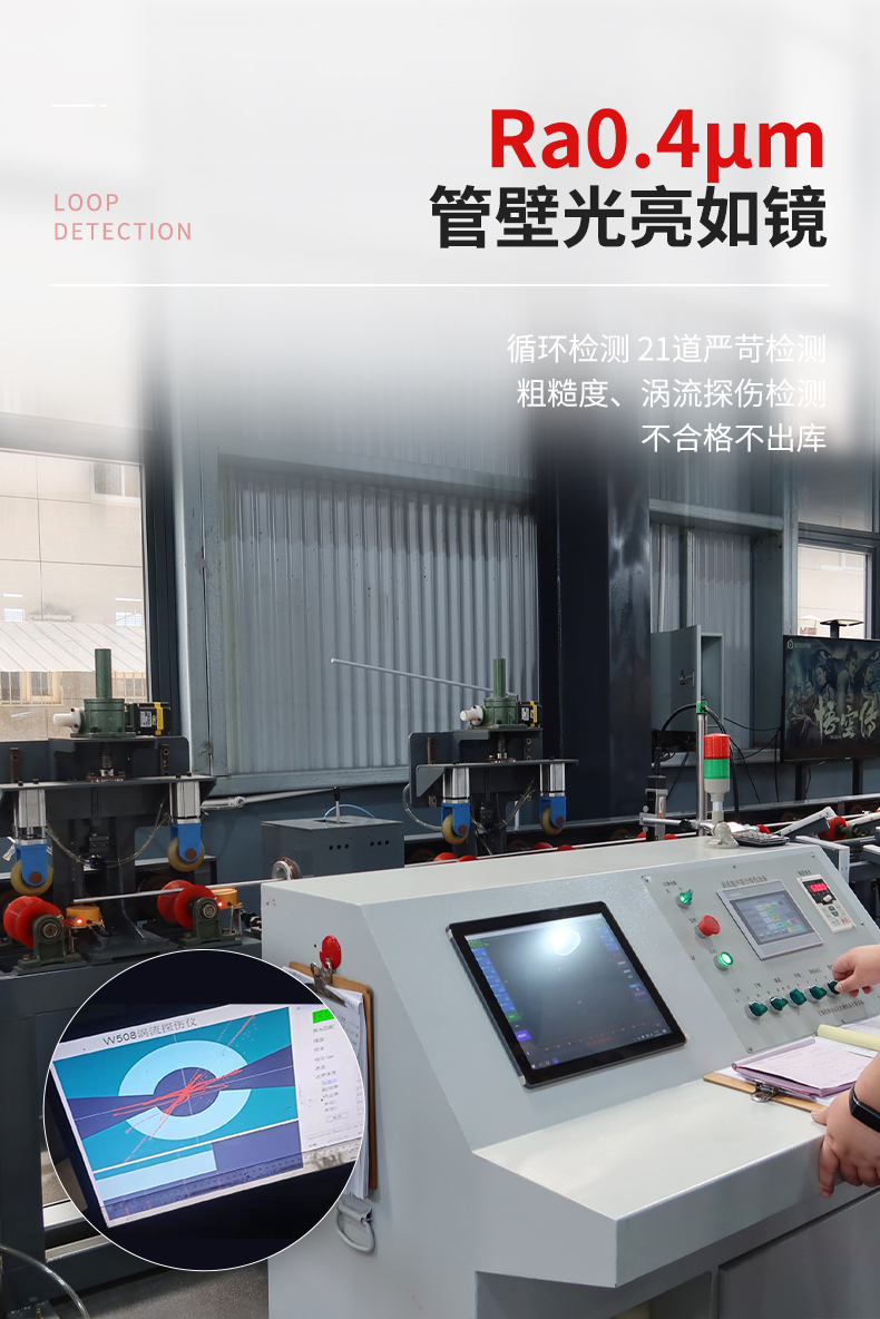 检验:涡流无探伤+水压等方式