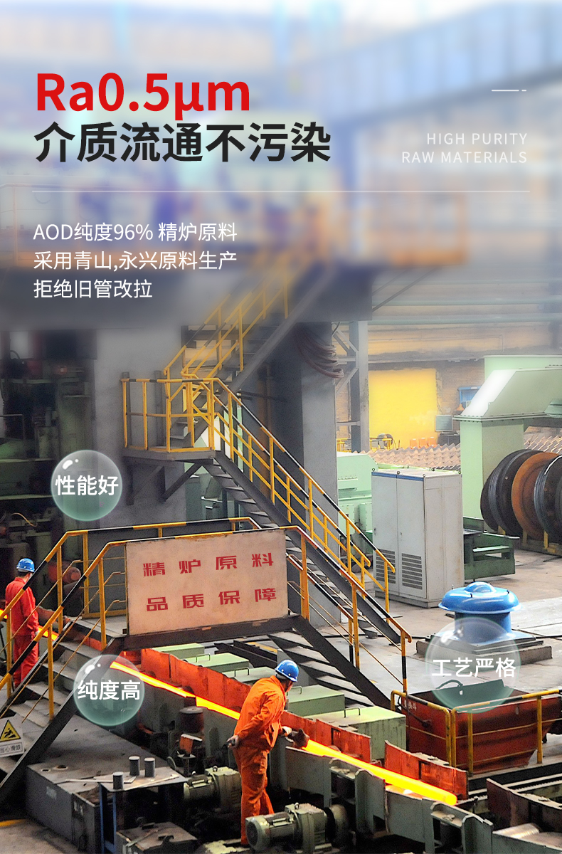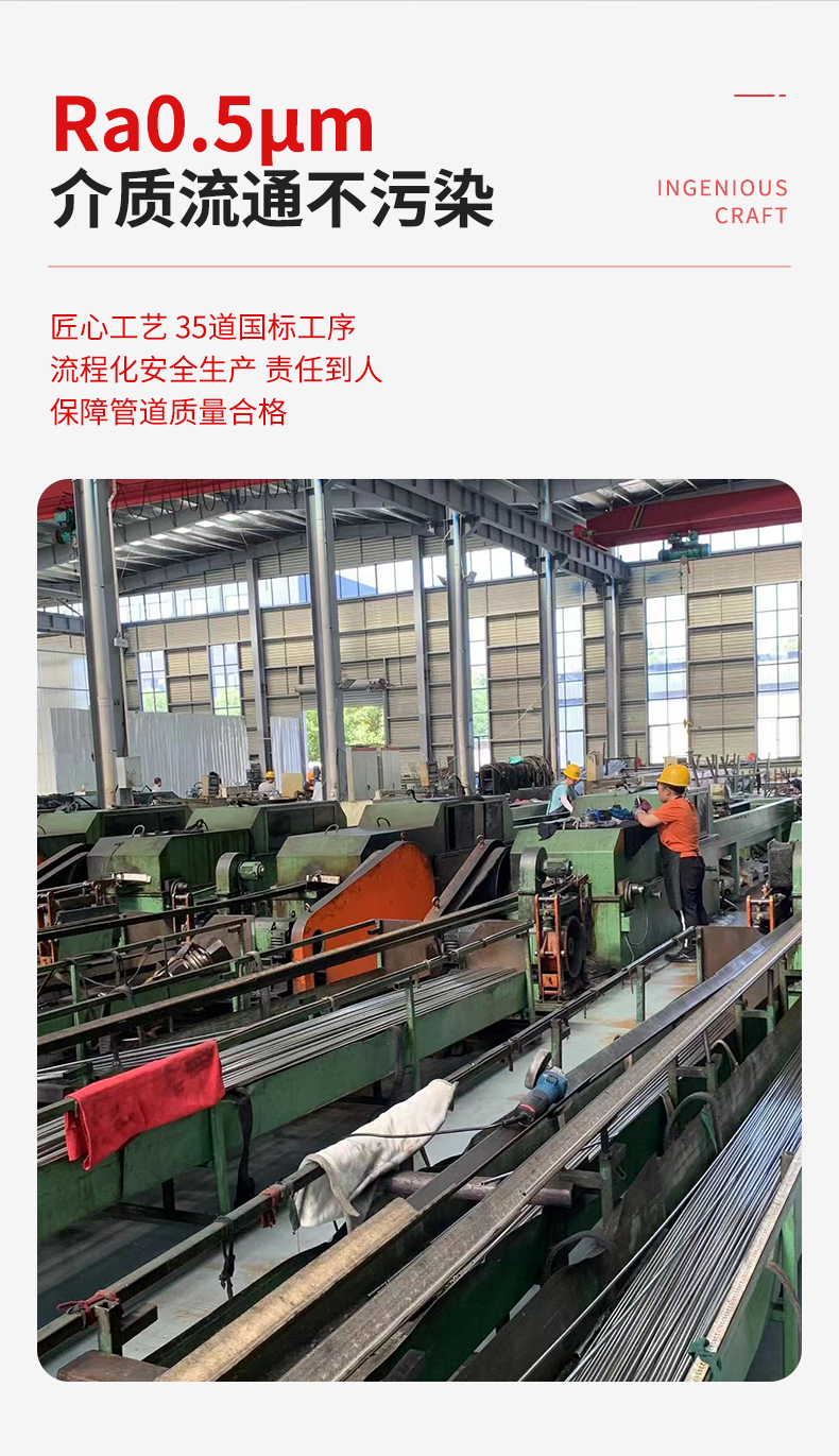 产品特点:在生物制药、食品生产、洁净气体安装等领域对不锈钢卫生级管道的洁净度有严格的要求。荣瑞不锈钢采用专用的清洗剂,超声波循环清洗,达到无尘无油。放心使用。